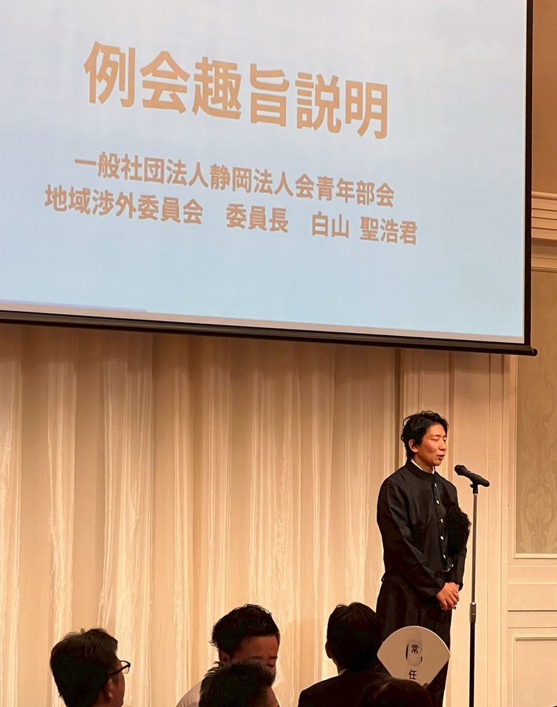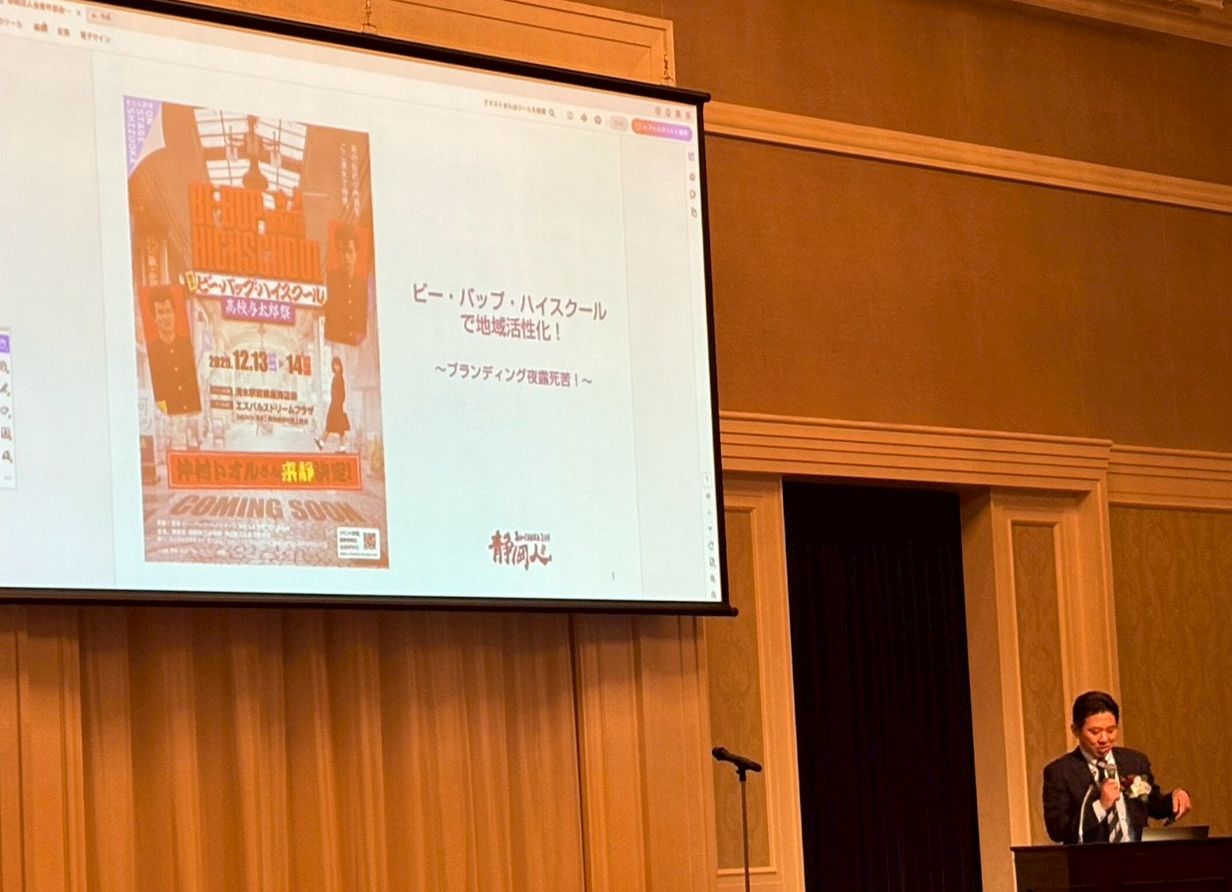 例会は、二部構成になっており、第一部は石川様に本年12月13日、14日に清水にて開催される清水ビー・バップ・ハイスクル―ル校与太郎祭イベント開催の経緯や裏側についてお話をしていただきました。石川様のお話の中で、イベントを開催し、地域を活性化する秘訣や地域ブランディングの考え方、やり方についてお話をしていただきました。